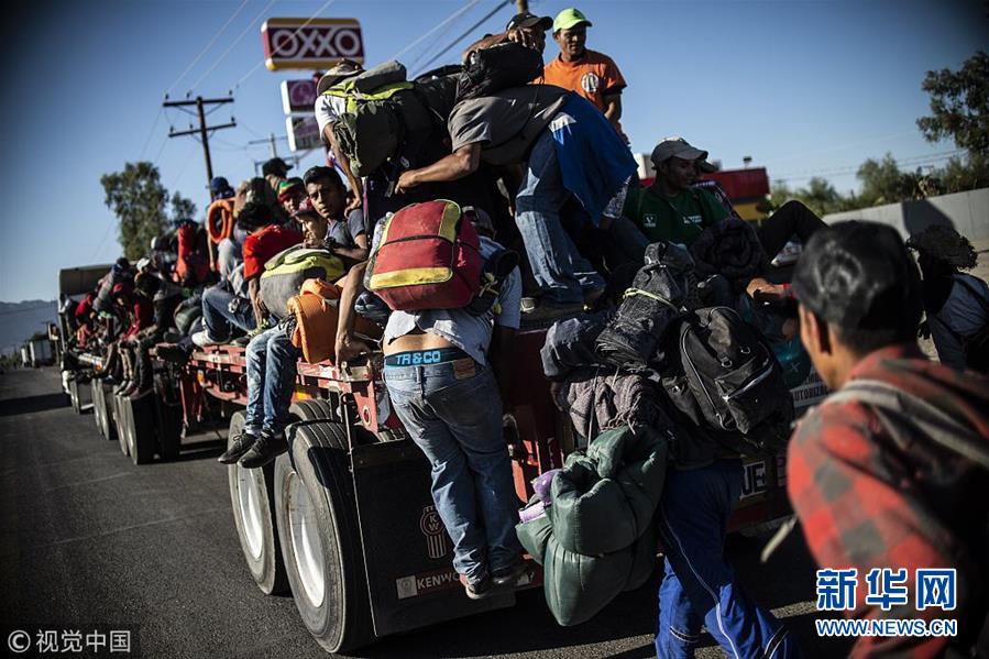大批中美洲移民持續抵近美墨邊境 敞篷車上擠滿人