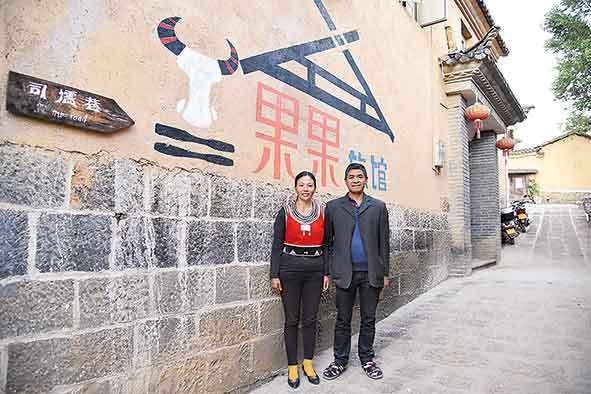 ▲2020年12月31日,中寨司莫拉佤族村村民李發(fā)果和丈夫在自家經營的旅館前。新華社記者林碧鋒攝
