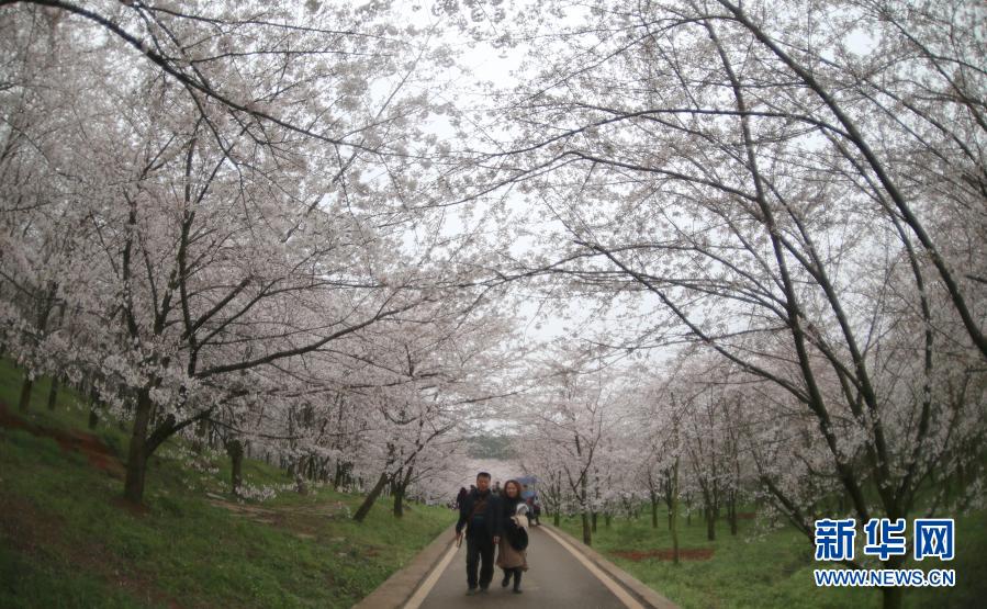 春季里,貴州省貴安新區紅楓湖畔的櫻花園內櫻花綻放,花海如云似雪,吸引游人踏春賞櫻。
