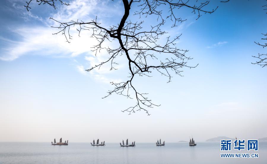 3月13日拍攝的江蘇省無錫市太湖黿頭渚景區晨景。