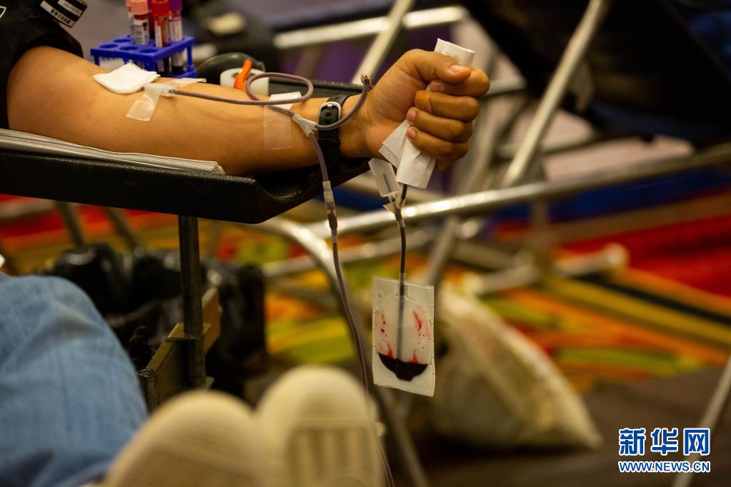 6月14日,在美國紐約州長島地區的尤寧代爾,獻血志愿者在美國紐約血液中心舉行的獻血活動上獻血。