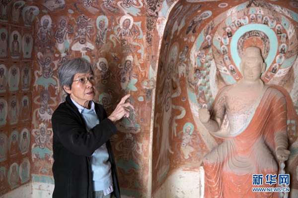 她是敦煌研究院名譽(yù)院長(zhǎng)樊錦詩(shī)。1938年,祖籍杭州的樊錦詩(shī)出生在北京,自1963年大學(xué)畢業(yè)后,她便開(kāi)始了與莫高窟長(zhǎng)達(dá)半個(gè)多世紀(jì)的相守。在她和同事的努力下,莫高窟在1987年成為中國(guó)首批進(jìn)入世界文化遺產(chǎn)名錄的遺產(chǎn)地,并逐步成為世界文化遺產(chǎn)保護(hù)和利用的全球典范。