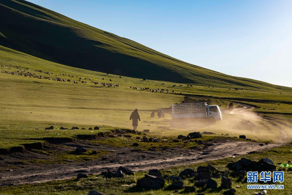 新疆裕民縣巴爾魯克山區(qū)夏牧場景觀(6月15日攝)。如今,牧民放牧條件得以改善,摩托車、汽車更多地出現(xiàn)在牧場上。