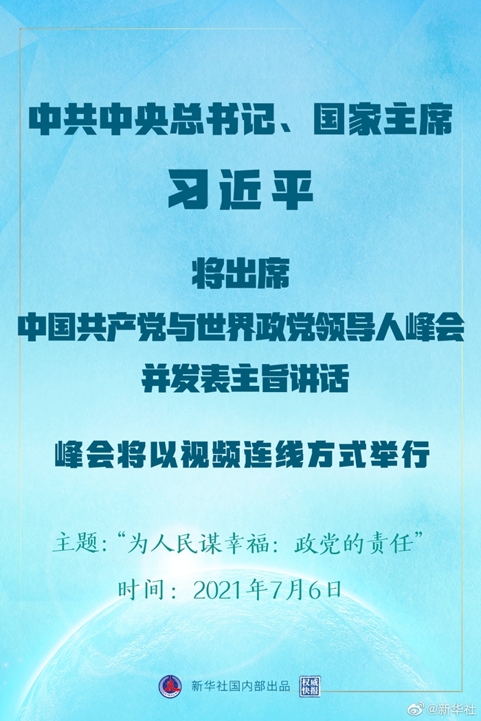 權威快報丨習近平將出席中國共產黨與世界政黨領導人峰會