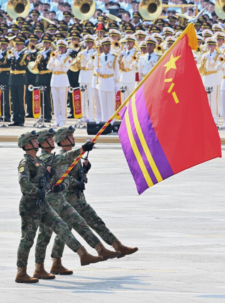 3日上午,信息支援部队方队接受检阅。这是信息支援部队成立以来首次亮相阅兵场。