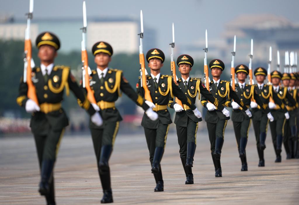 随着“标兵就位”一声令下,60名阅兵标兵入场,阅兵式正式开始。