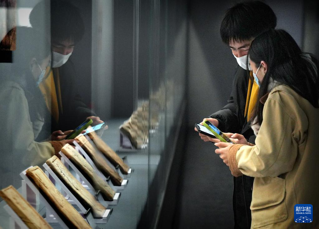 观众在郑州大象陶瓷博物馆观看展品(3月1日摄)。