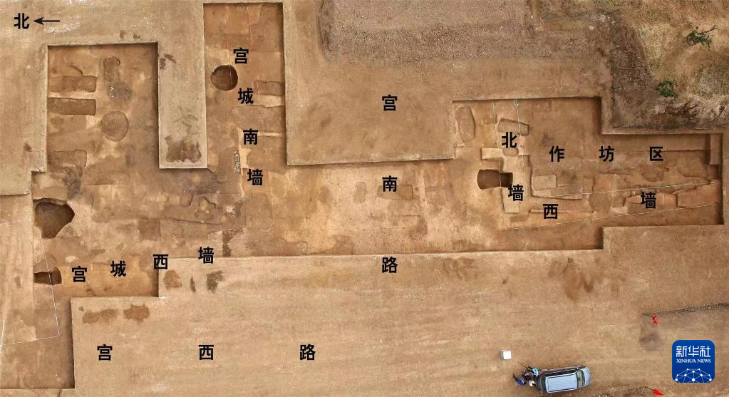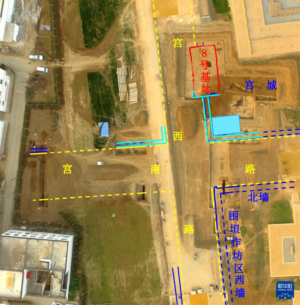 河南偃师二里头都邑8号基址、宫城西南与作坊区西北部航拍(资料照片)。