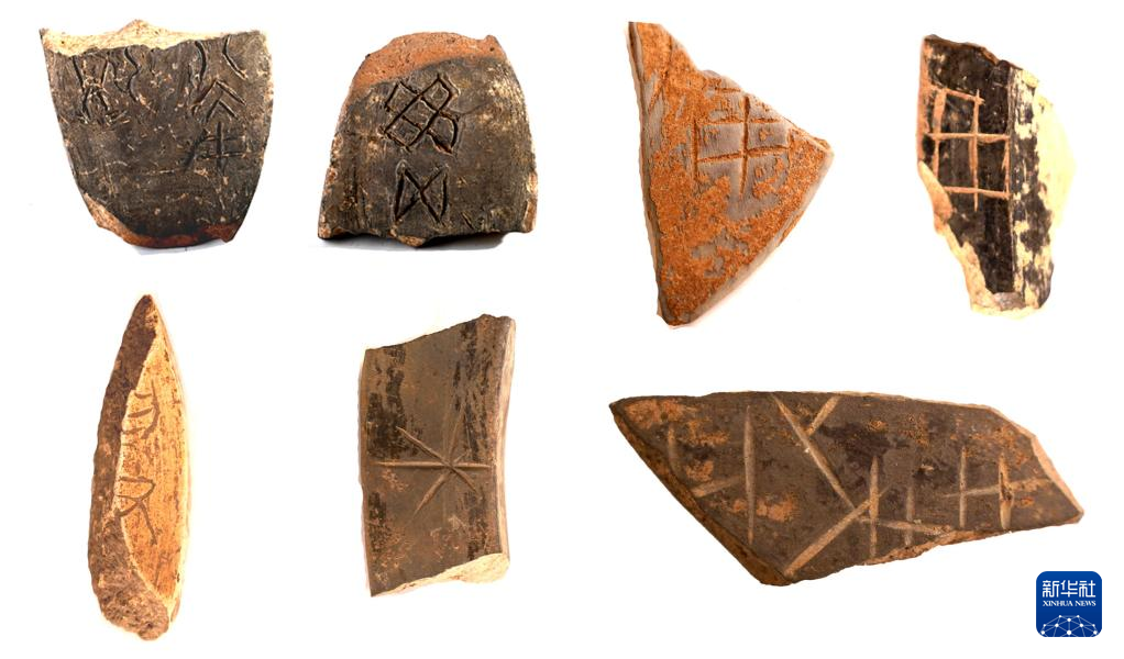 陕西旬邑西头遗址出土的陶器刻划符号与陶文(资料照片)。