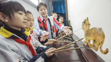 3月29日,视障学生在展览现场通过盲文以及可供触摸的文物模型和五感体验盒等观展。