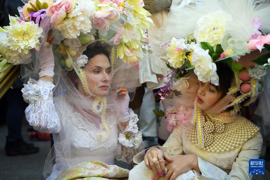 当日是西方传统节日复活节,人们头戴精心制作的花帽,在纽约第五大道参加一年一度的复活节游行。