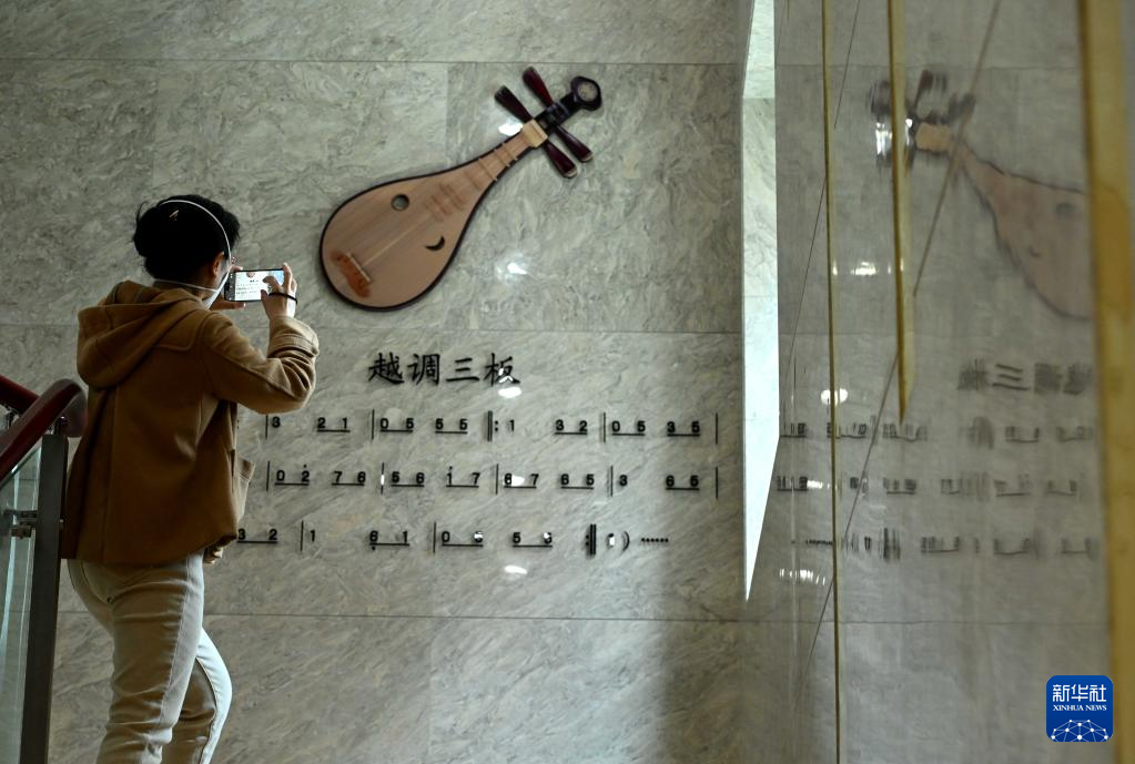 4月13日,市民在河北省石家庄丝弦艺术陈列馆参观拍照。