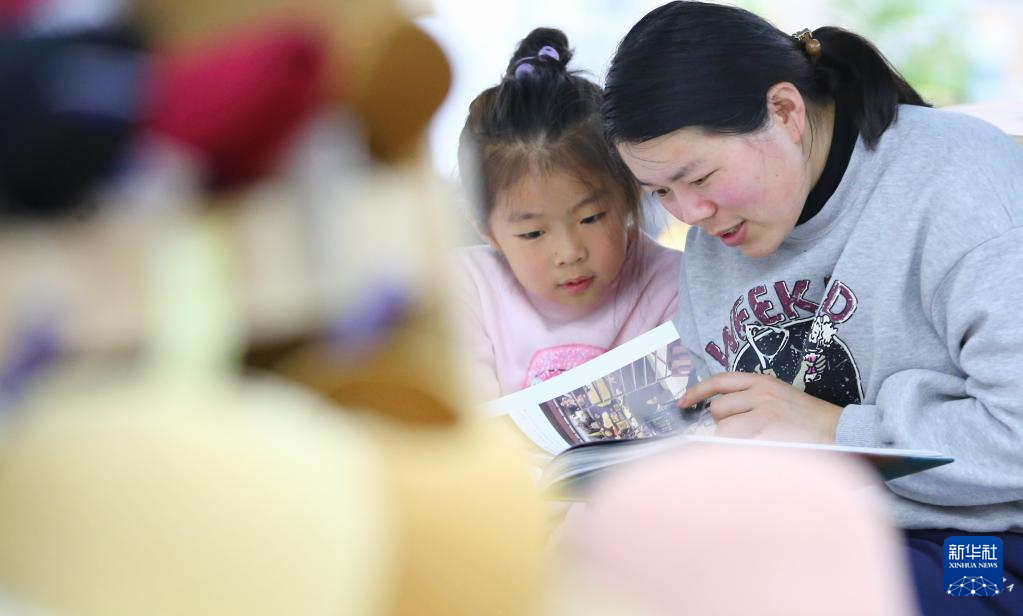4月22日,小朋友在河北省石家庄市一家书店内阅读绘本。