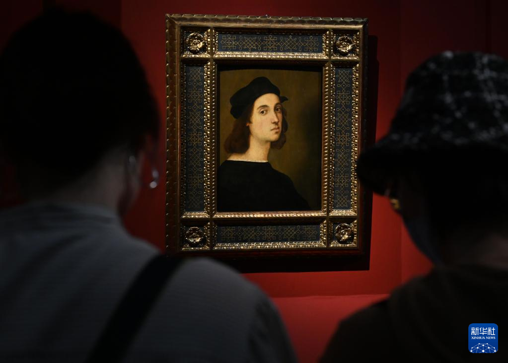 这是在展览现场拍摄的拉斐尔自画像(4月26日摄)。