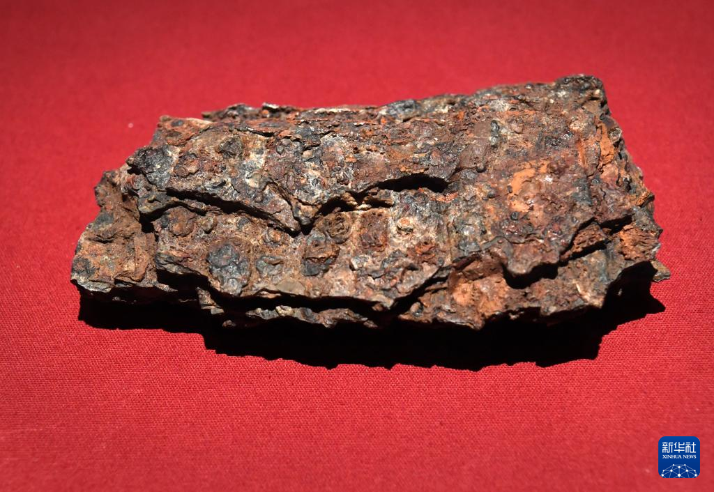 这是曹操高陵遗址博物馆内展出的铁甲片(4月22日摄)。