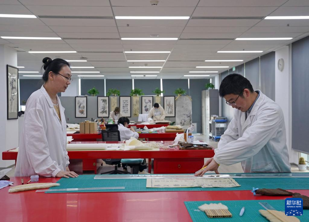 4月28日,在上海市档案馆的保护技术部,年轻的档案修复师们在工作中。