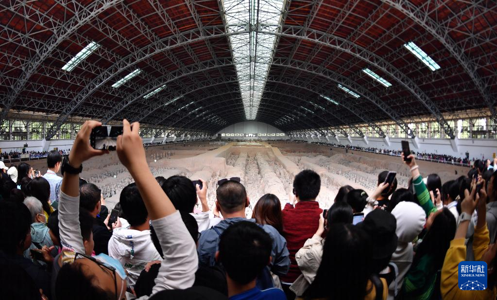 游客在秦兵马俑一号坑遗址参观(2023年4月26日摄)。新华社记者 刘潇 摄