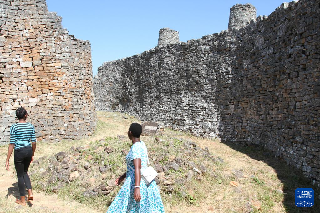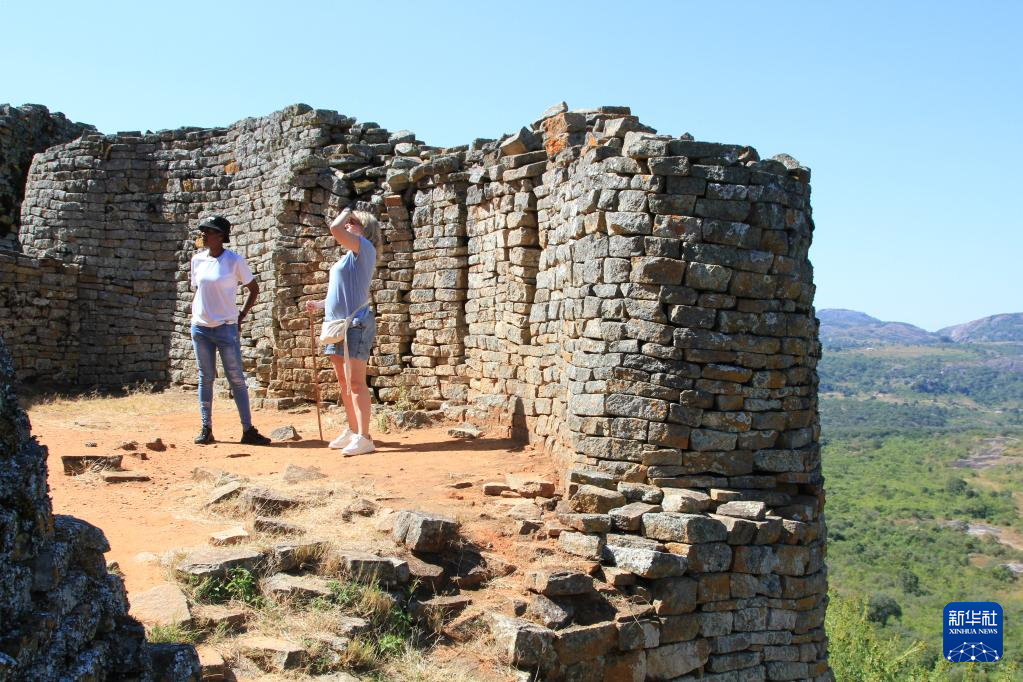 5月5日,游客在津巴布韦马斯温戈参观大津巴布韦遗址。