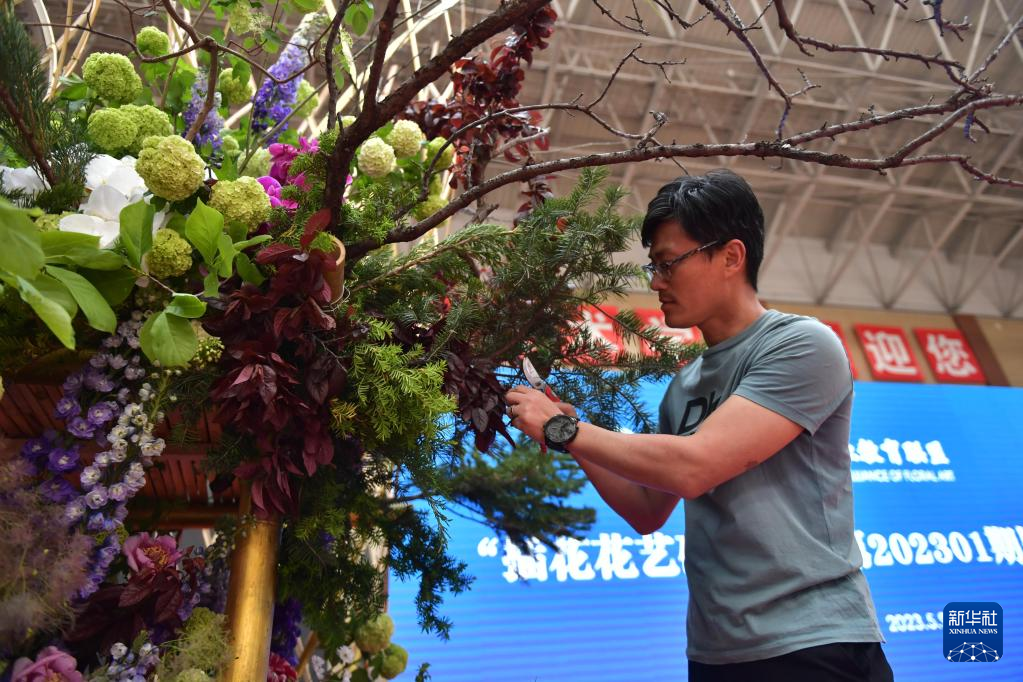 5月10日,辽宁农业职业技术学院学生进行花艺秀展示。