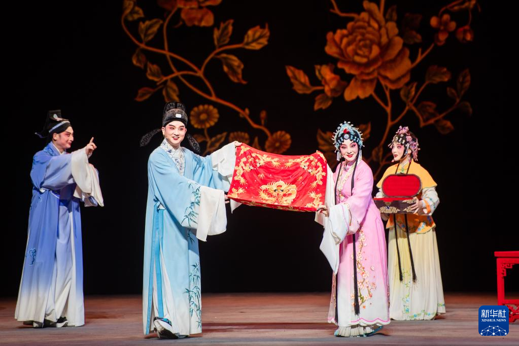 5月15日,演员在舞台上表演黄梅戏《罗帕记》。