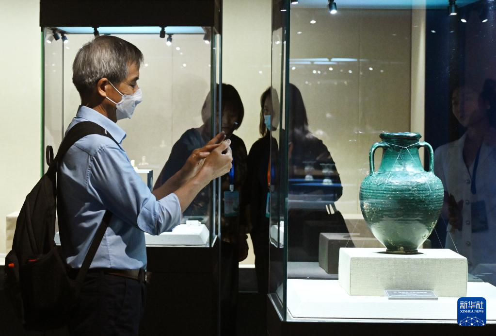 5月18日,观众在“福航天下——海上丝绸之路的文化印记”主题展览上参观。