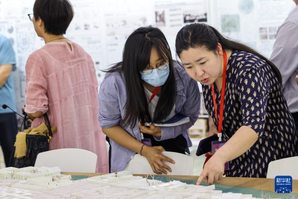 5月18日,观众在博览会上参观建筑景观设计作品。