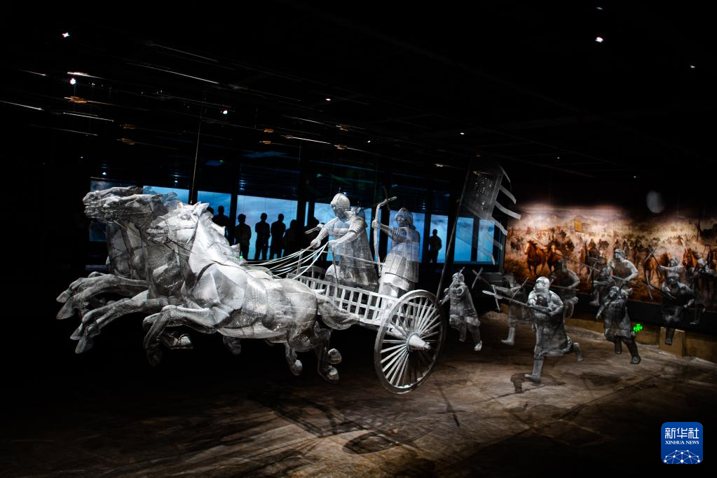 5月20日,在熊家冢国家考古遗址公园,游客在车马坑前参观。