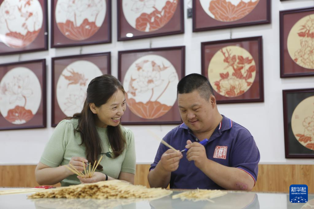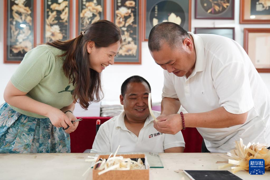 夫妻俩推行残疾人就业项目,每年拿出收入的20%作为传承经费,包吃包住免费向残疾人传授芦苇画手工技艺。据介绍,公司至今累计培训学员9000多人次,已发展成“国家级残疾人非遗传习基地”“国家级残疾人文化创意产业基地”。