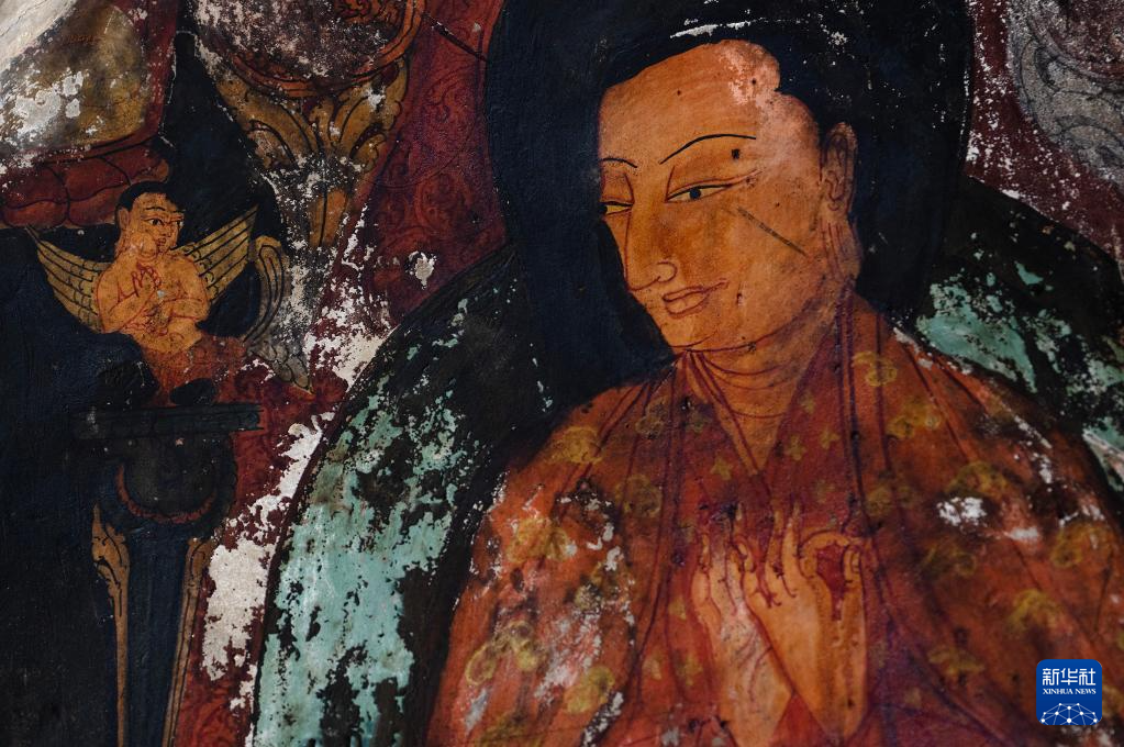 这是5月26日拍摄的皮央石窟壁画中的人物造型。
