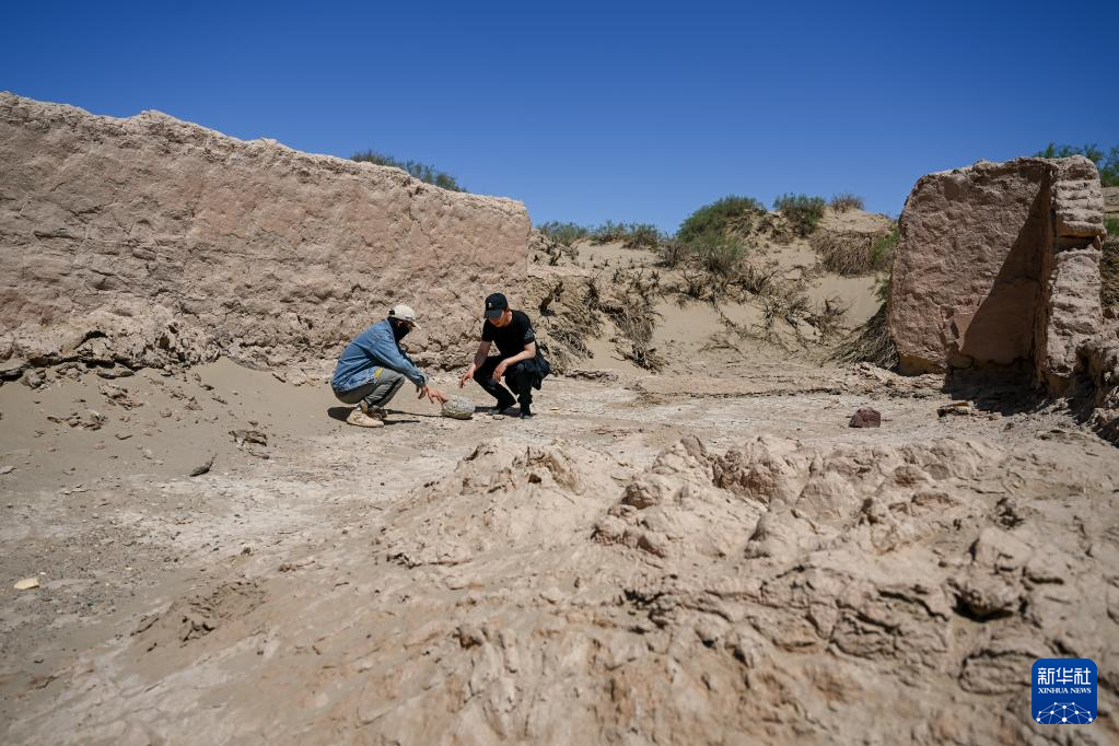 6月2日,额济纳旗文物保护中心工作人员拍摄红庙遗址坍塌情况。