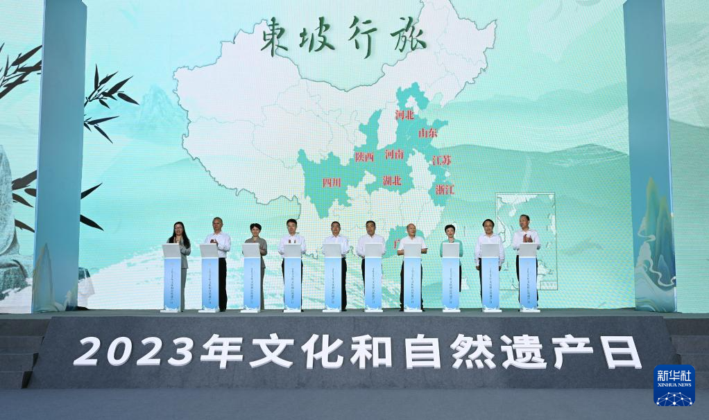 6月10日,嘉宾在活动开幕式上启动东坡文物主题游径建设试点。新华社记者 李贺 摄