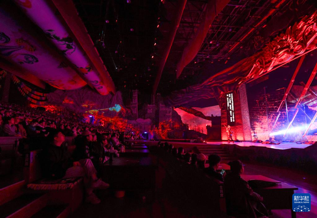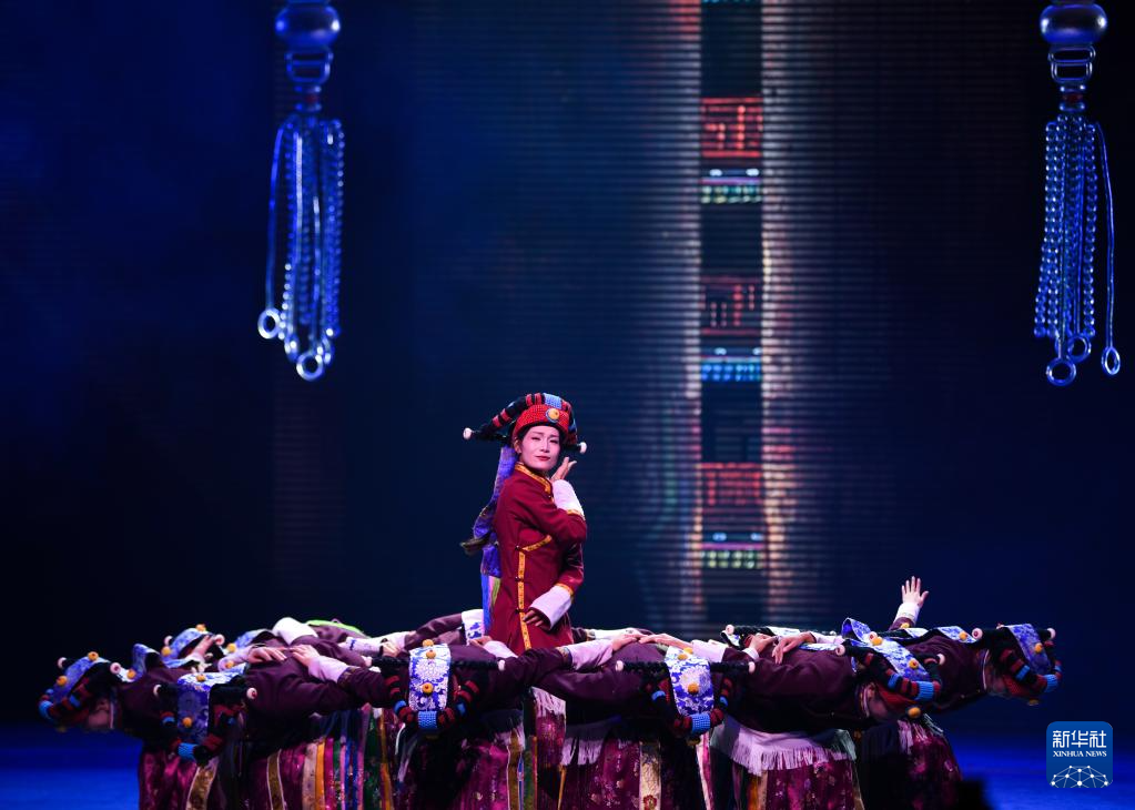 6月13日,在四川省阿坝州小金县四姑娘山景区,演员在大型歌舞剧《遇见斯古拉》中表演。