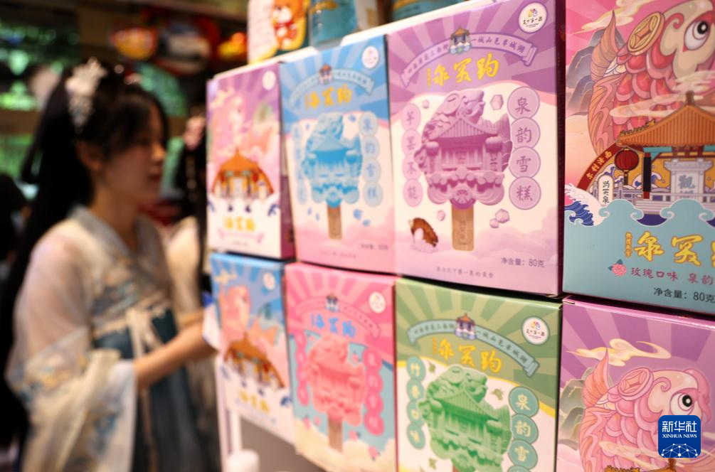 7月16日,游客在山东省济南市趵突泉景区选购文创雪糕。