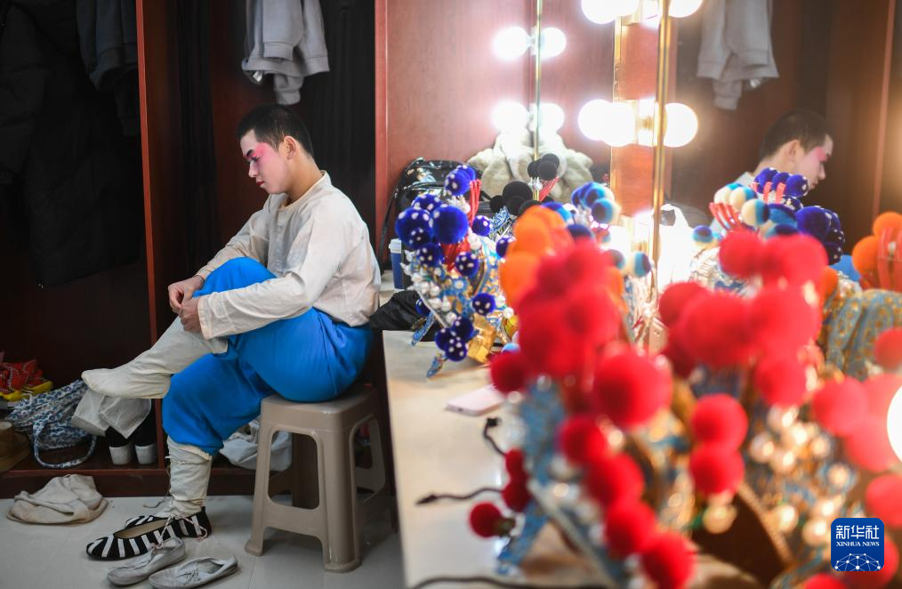 1月23日,汉剧演员黄瑛琪在登台前候场。
