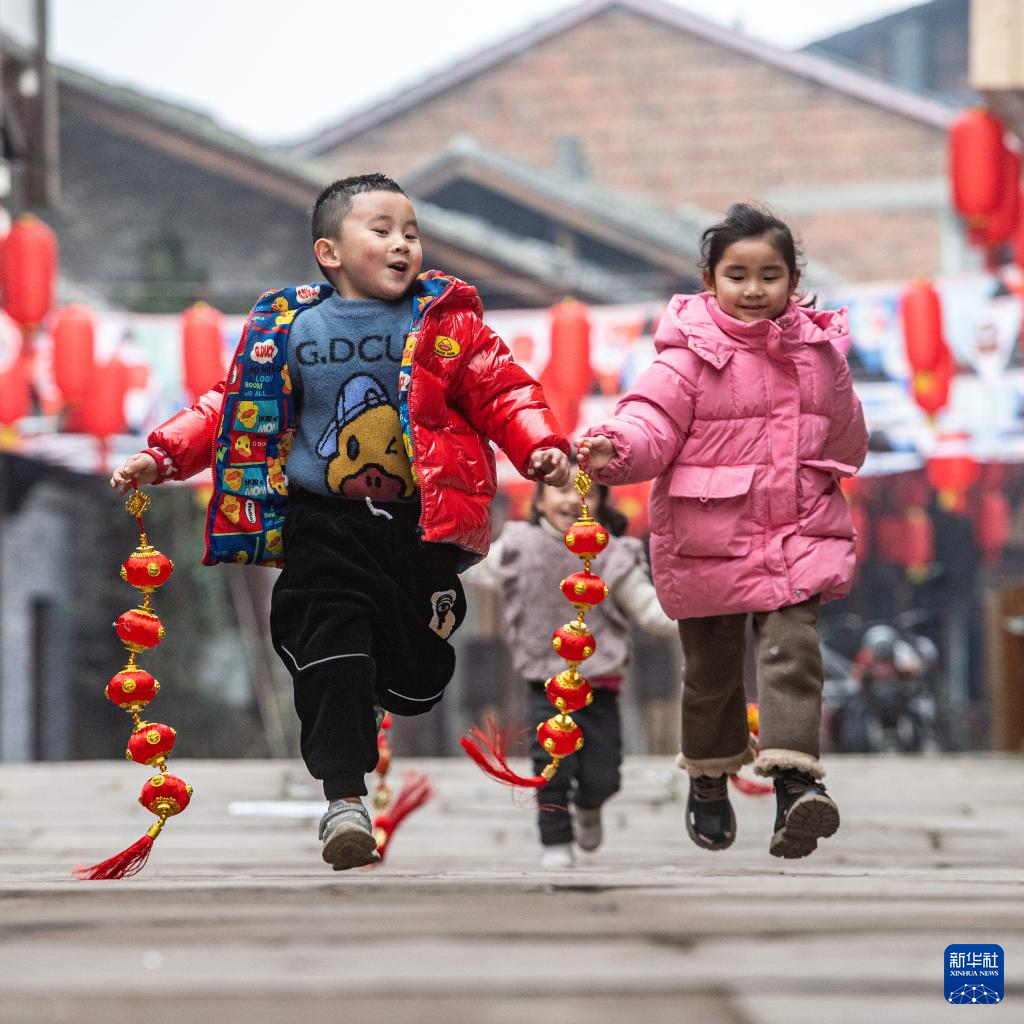 春节临近,位于重庆市大足区的雍溪古镇老街张灯结彩,喜迎新春佳节。