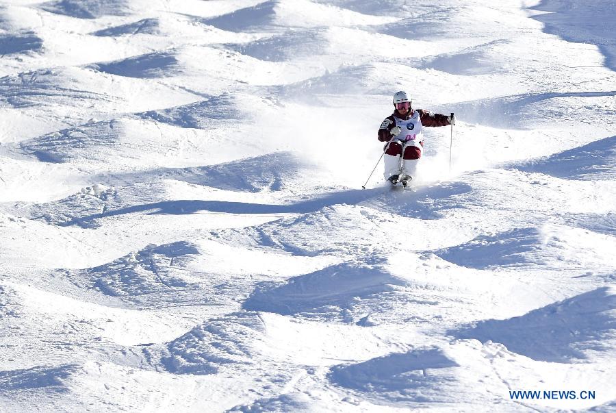 Andi Naude of Canada competes during the ladies' Moguls on the Day 1 of the 2017-2018 Freestyle Skiing World Cup-Moguls & Aerials at the Thaiwoo ski resort in Chongli District of Zhangjiakou City, north China's Hebei Province, Dec. 21, 2017. (Xinhua/Wang Xiao)