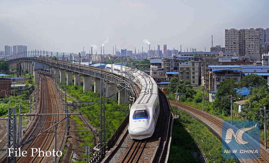 A bullet train drives in Liuzhou City, south China's Guangxi Zhuang Autonomous Region, July 14, 2017. (Xinhua/Li Xin)