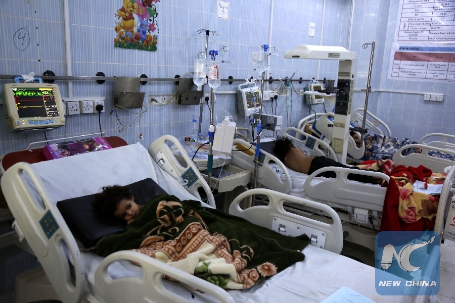 "I have rushed my family from the village and arrived here in the hospital two days ago, my youngest child died while we were traveling on the road to the hospital, my second child died on Saturday in the hospital, my wife and my other three children are now in the intensive care unit," Yahya, told Xinhua.