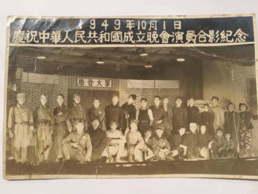 27 actors and actresses, who performed on an evening gala celebrating the founding of the People's Republic of China, posed for a photo on Oct. 1, 1949. (Photo provided by Liu Zhimin to Xinhua)