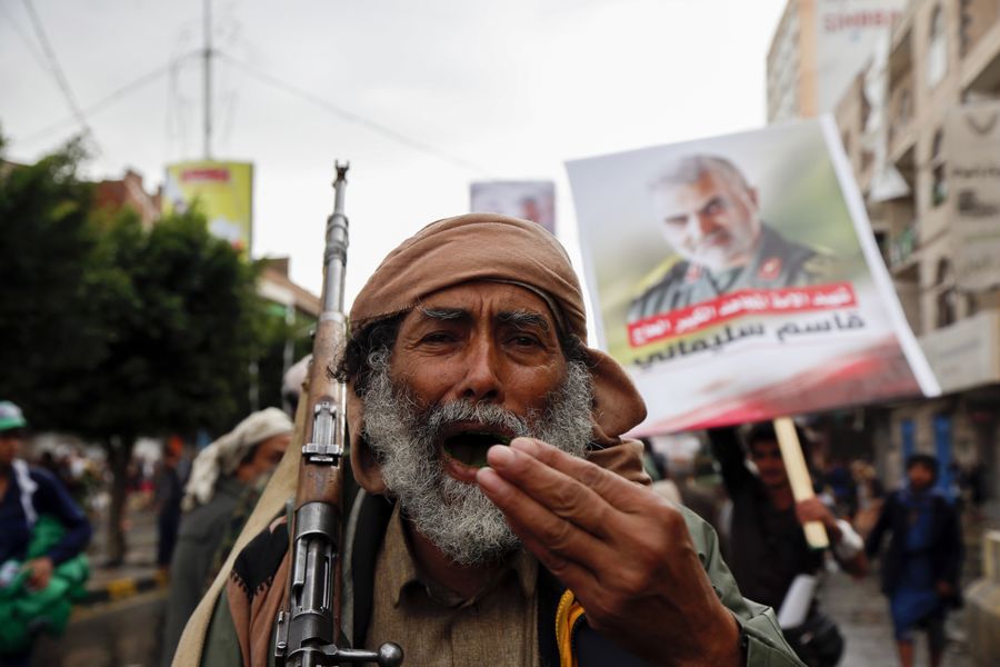 ADEN, Yemen -- Yemen's Houthi rebel group has called for striking the U.S. military bases in the region in swift reprisal for the killing of the senior Iranian commander Qassem Soleimani.