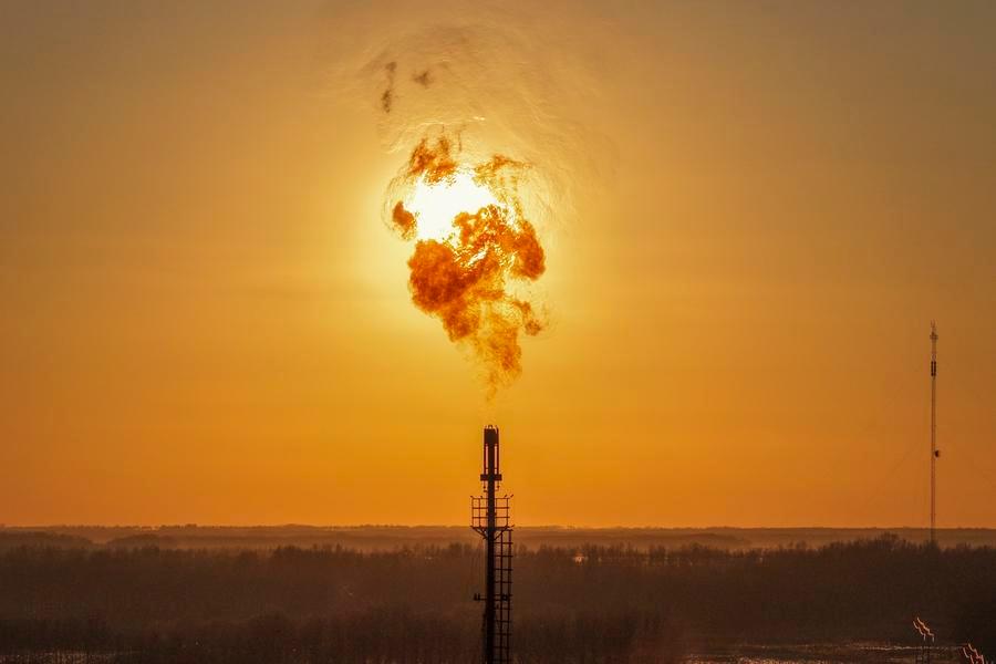 An aerial drone photo shows a flare at a national-level demonstration zone of continental shale oil of Daqing Oilfield in Daqing, northeast China's Heilongjiang Province, Dec. 4, 2025.  (Xinhua/Wang Song)