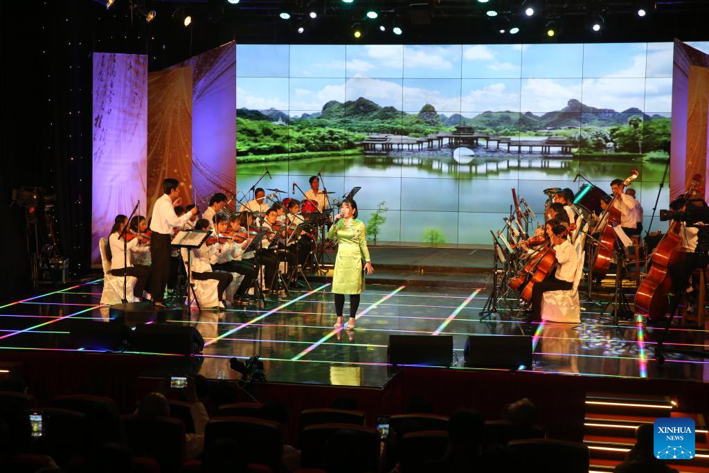 The classical poetry recitation and musical concert, jointly organized by China's Guangxi Radio and Television and Myanmar Radio and Television under Myanmar's Ministry of Information, brought together around 200 audience members from the Chinese and Myanmar communities.