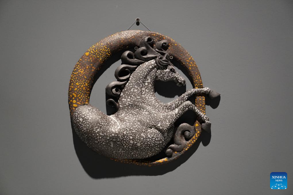 This photo taken on Dec. 19, 2025 shows a ceramic artwork by a Turkish artist during the "Dunhuang in Glazes" exhibition at the Jiangxi provincial art museum, in Nanchang, east China's Jiangxi Province. (Xinhua/Zhou Mi)