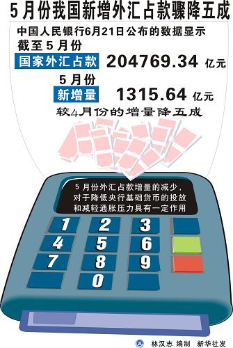 5月份我國(guó)新增外匯占款驟降五成