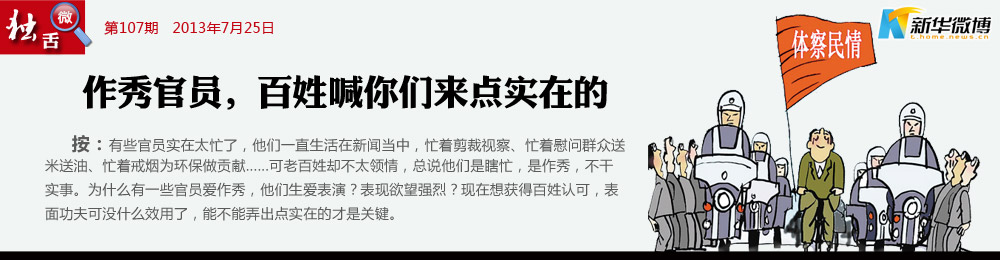 讓群眾開心? 讓領導開心:作假;讓同級開心:作啞;讓群眾開心:作秀。作秀,不會讓群眾開心,卻會嚴重損害執政黨的威信,消費黨的信譽。