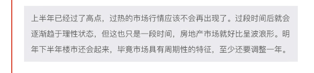 對于下半年樓市走勢,畢興礦認為,下半年肯定沒有上半年這么好...