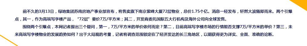 不過,一個市場現象是可喜的。據戴德梁行的數據統計,2014年,南京高端寫字樓物業的供應量將超過35萬平方米,主要集中于河西和南站區域,新街口和鼓樓核心區供應量不足7萬平方米。