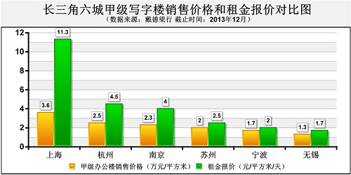 僅以蘇州為例,其甲級辦公寫字樓的平均售價已奔至“2字頭”;租金報價與南京同類物業的差距也已縮小至1.5元/平方米/天。 |