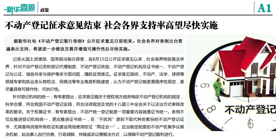 不動產登記征求意見結束