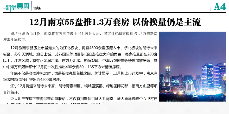 12月南京55盤推1.3萬套房